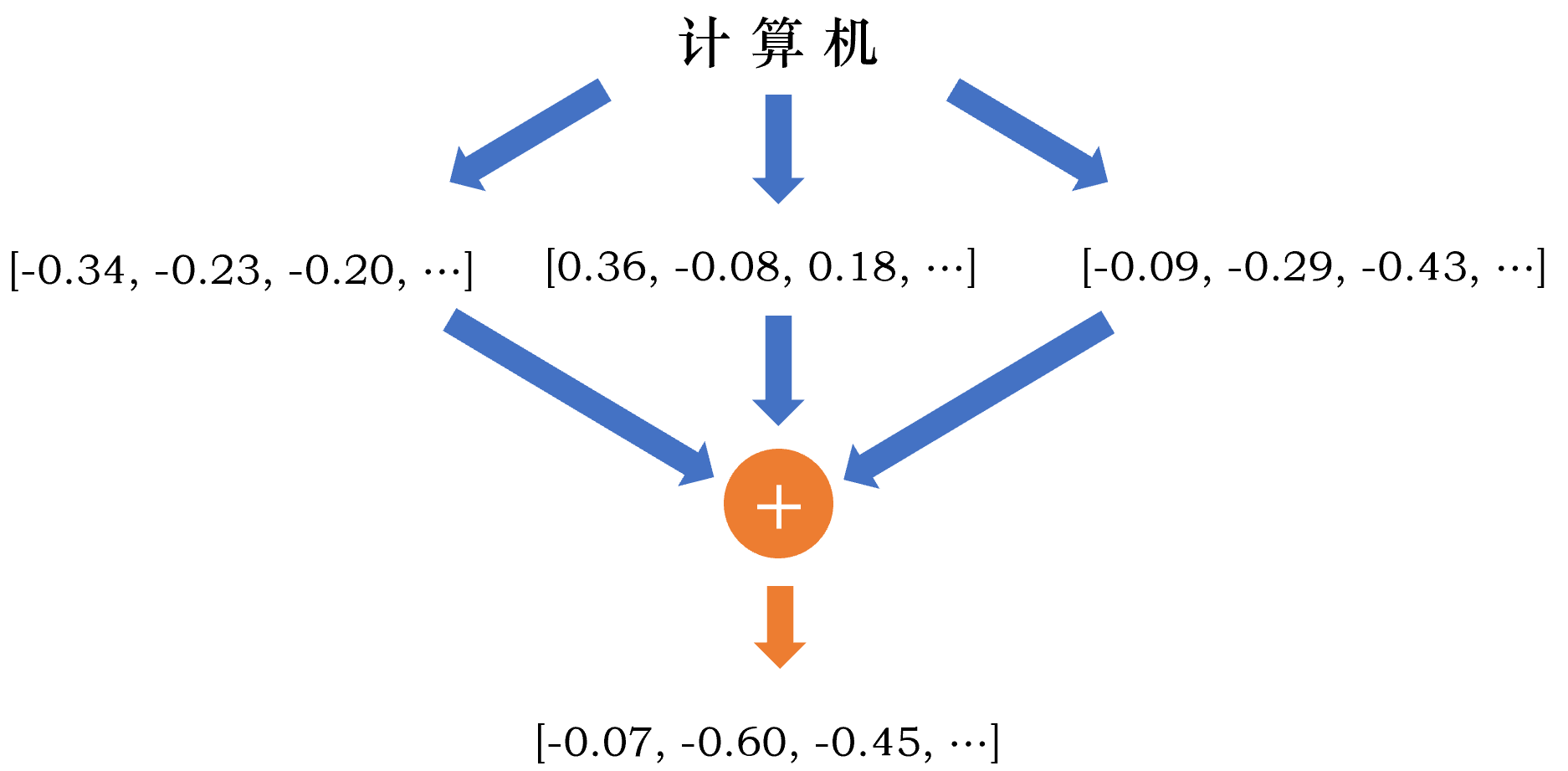 图片仅作示例,实际上的词向量维度要远大于3